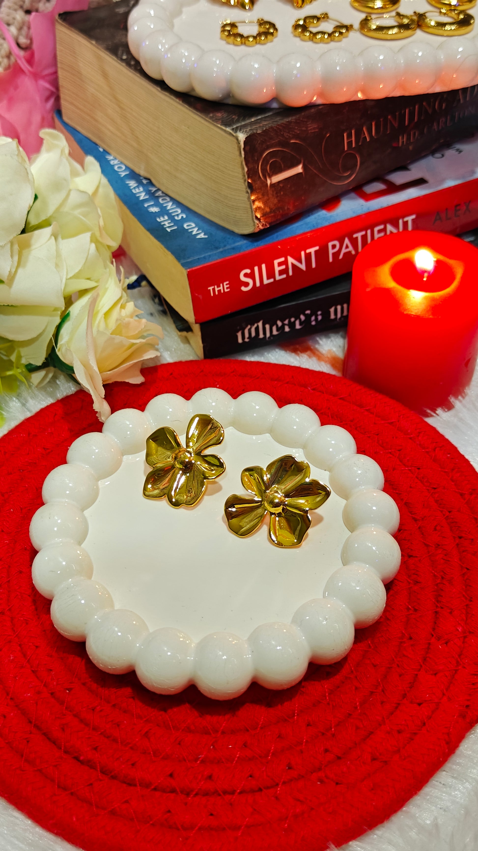 Add timeless charm to your look with these beautifully crafted Blooming Gold Flower Stud Earrings – Grace in Every Petal 🌸✨