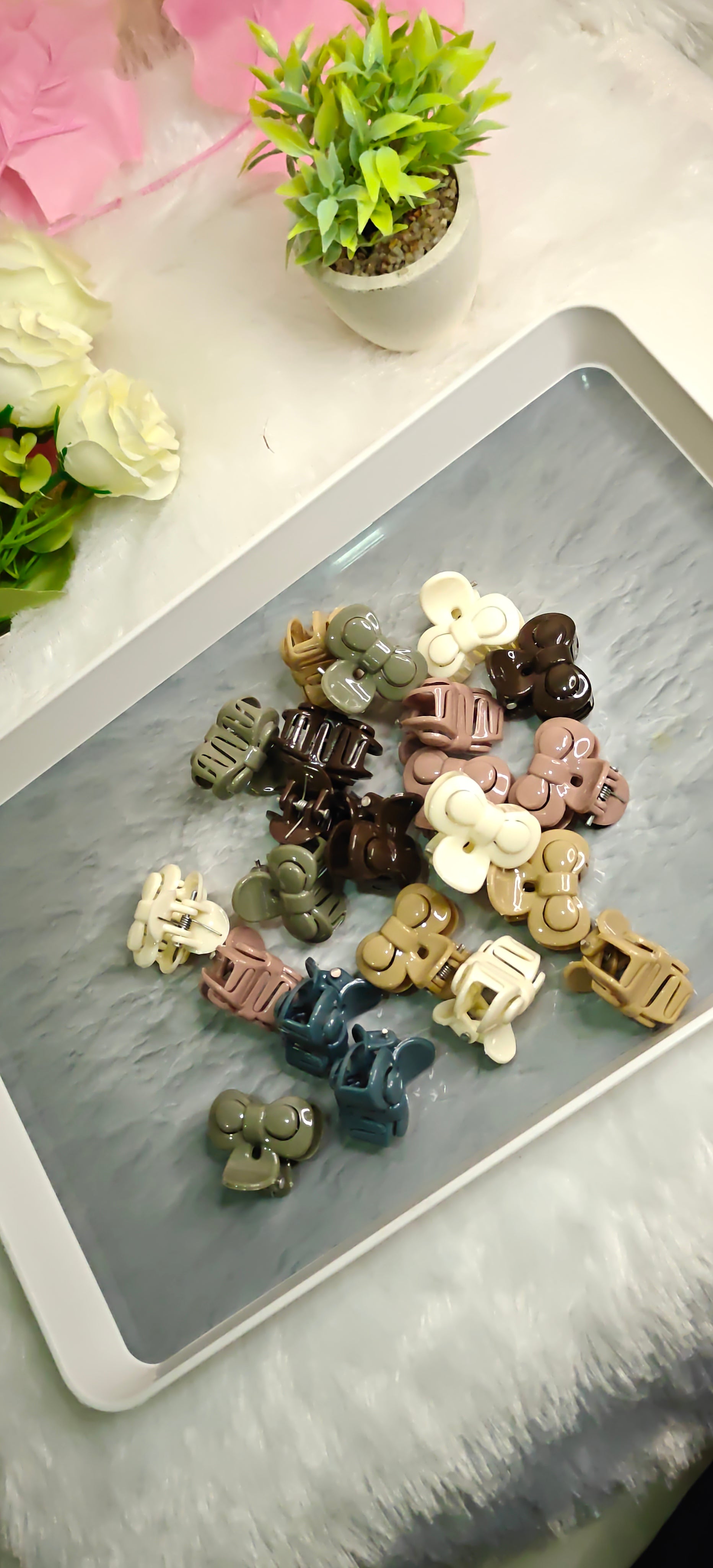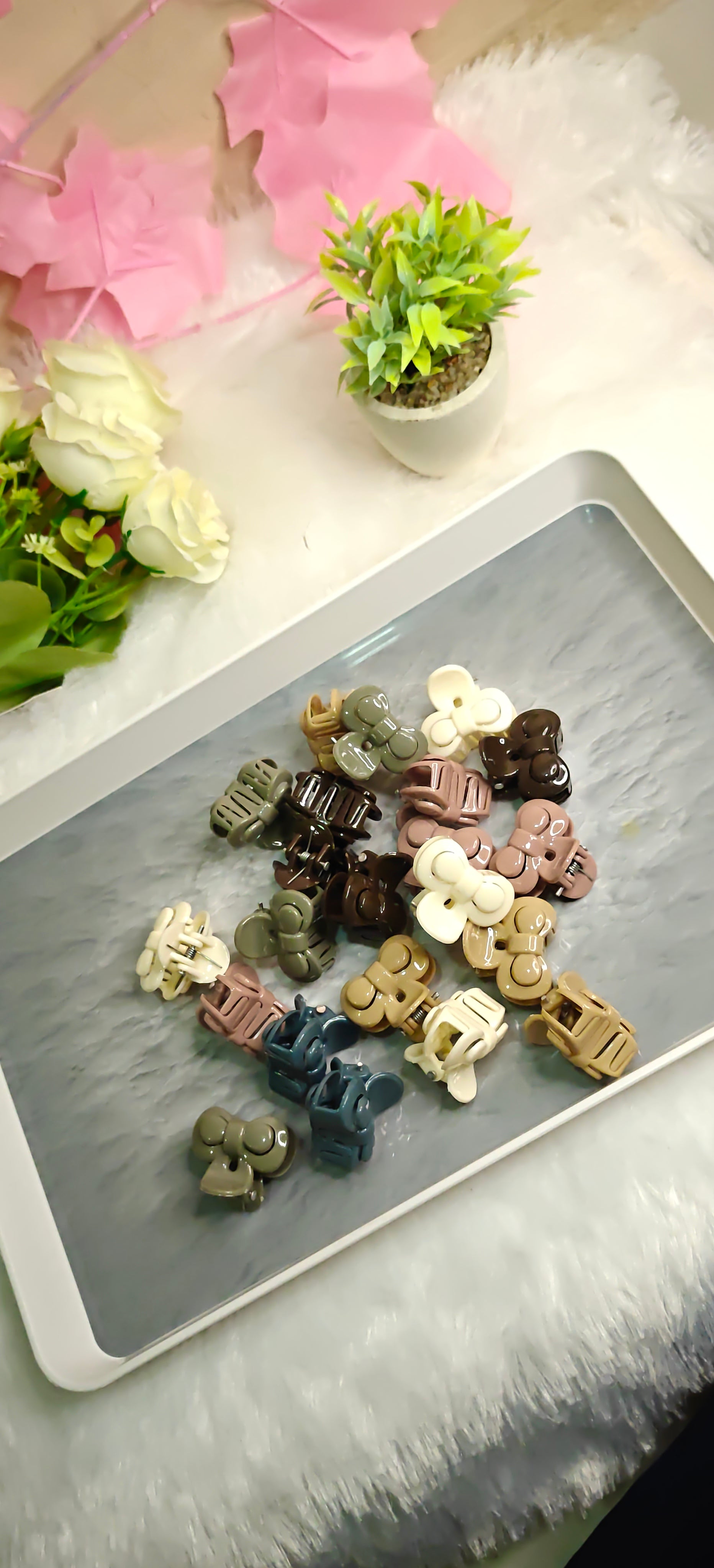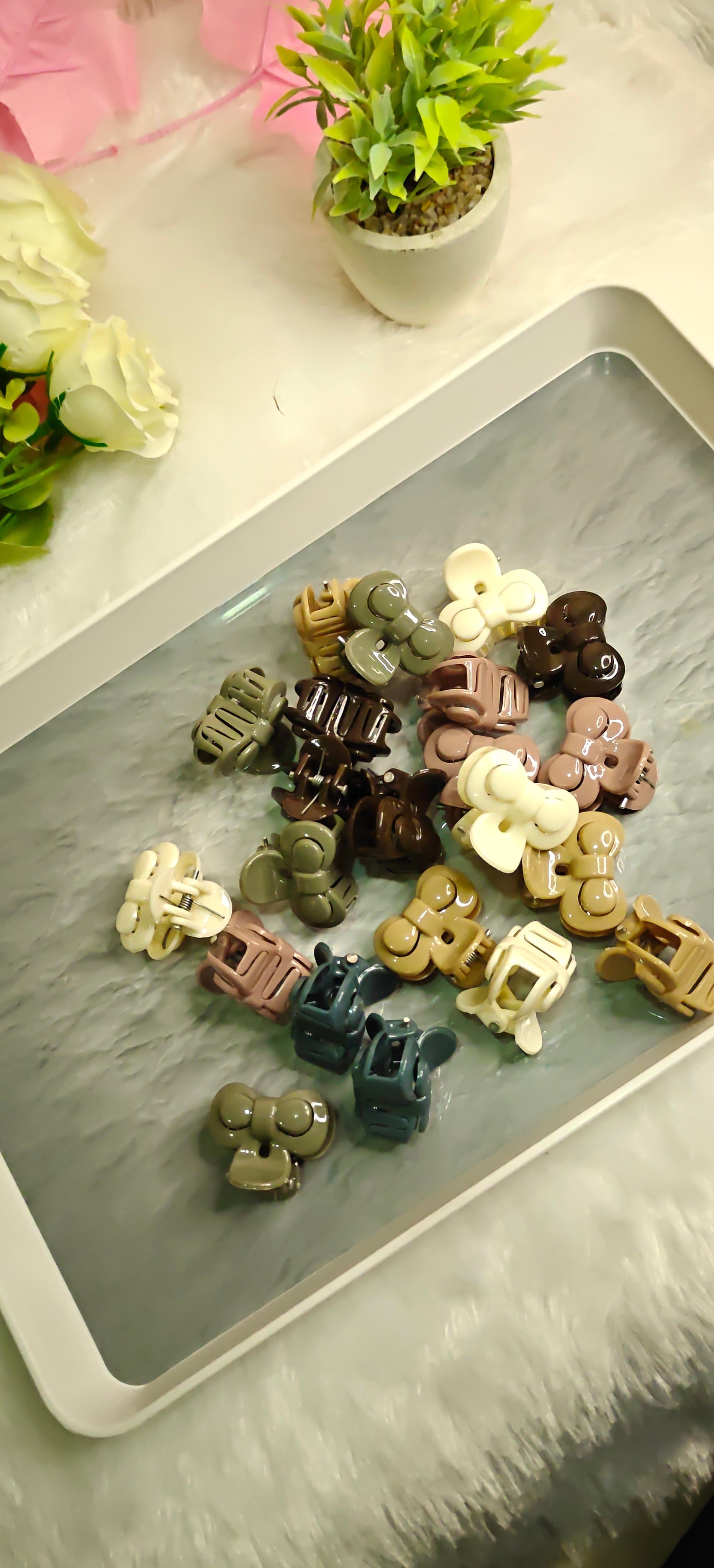 Add a pop of fun to your hairstyle with these Butterfly Mini Hair Claw Clips in assorted colors. Perfect for securing small sections of hair with a playful twist, they brighten your look while keeping your style effortlessly in place. Compact and cute, these clips are your new go-to for quick, colorful hair flair anytime!
