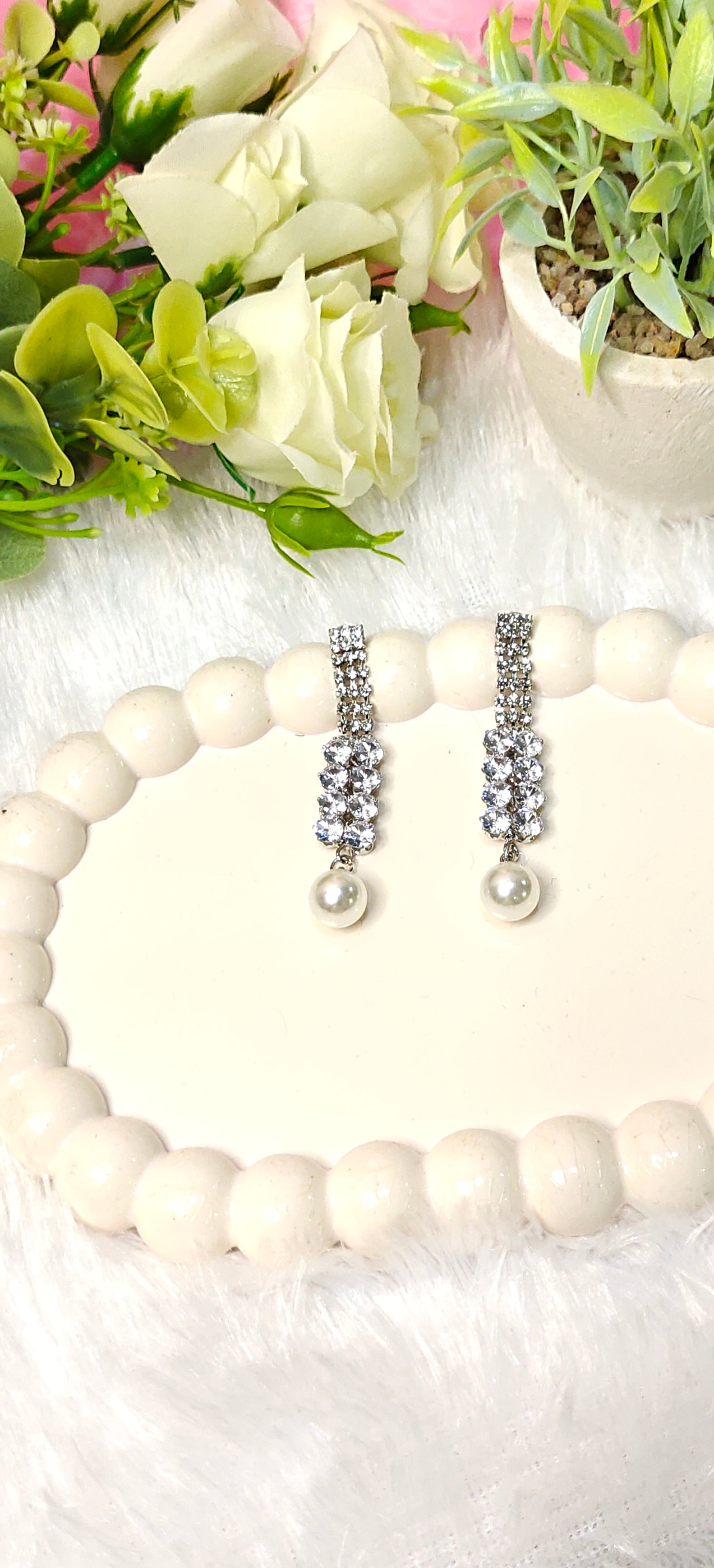 Add a touch of timeless glamour with these stunning earrings from DILVERSE. Featuring a vertical line of sparkling crystals cascading into a delicate pearl drop, these earrings are perfect for elevating both casual and formal looks.