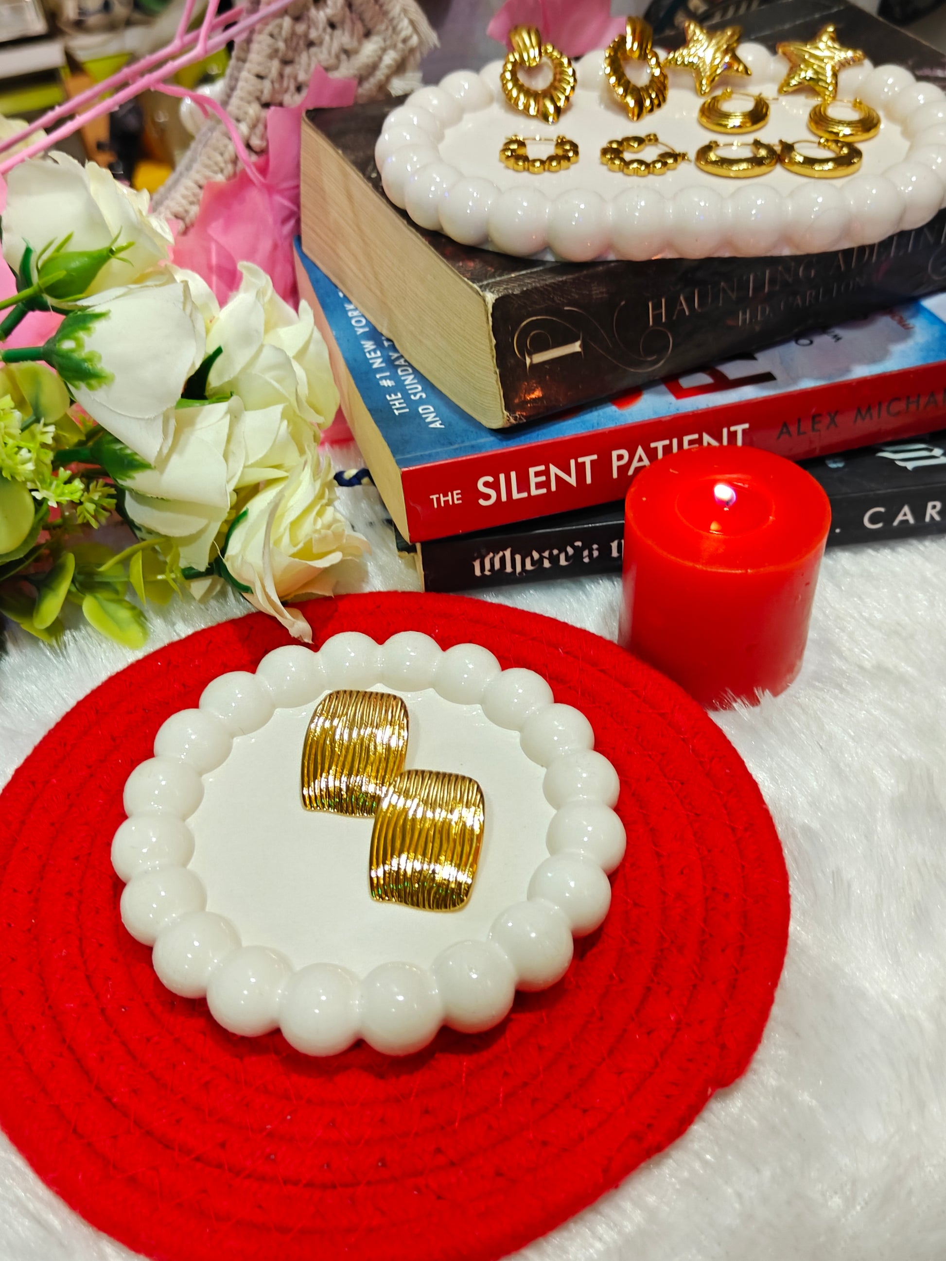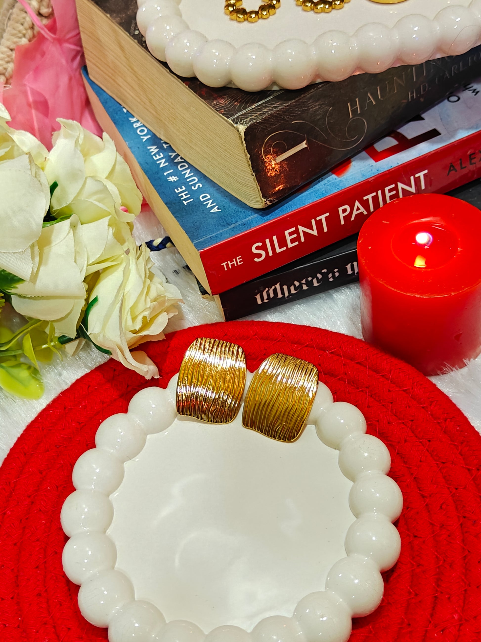 Designed with a glossy, ribbed texture that captures the light perfectly, these earrings bring a touch of elegance to any outfit.