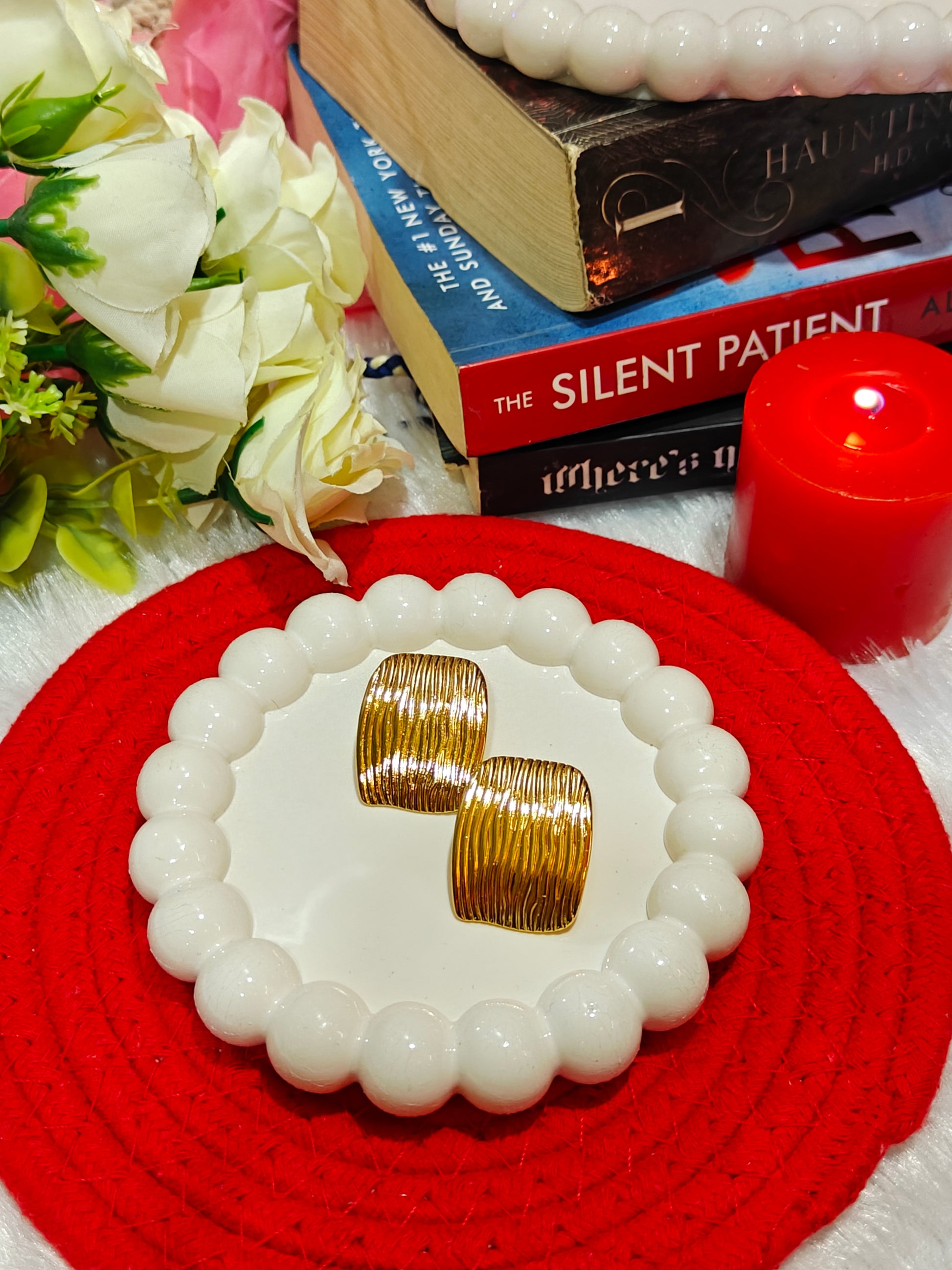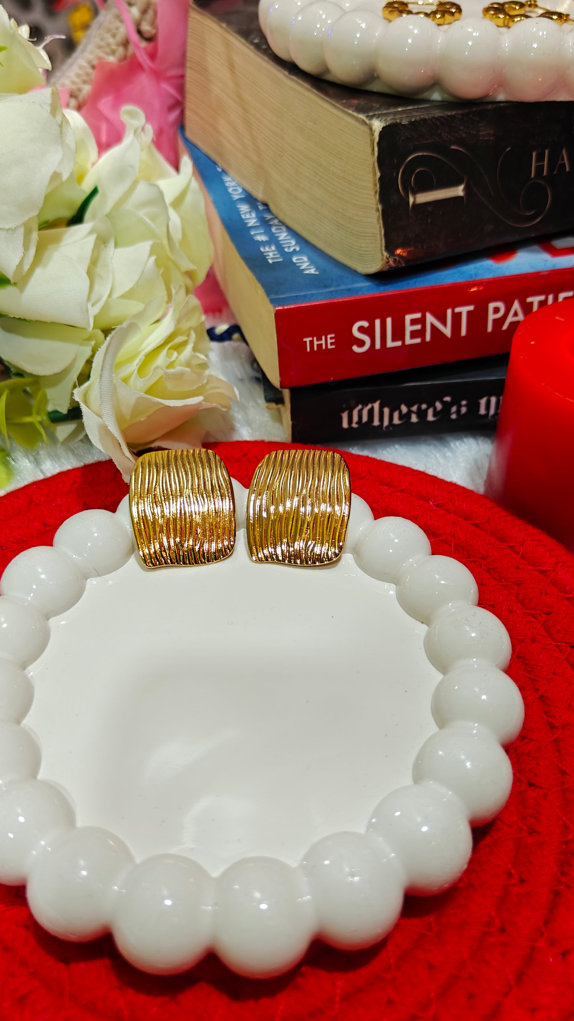 Elegant Textured Gold Square Stud Earrings at Dilverse