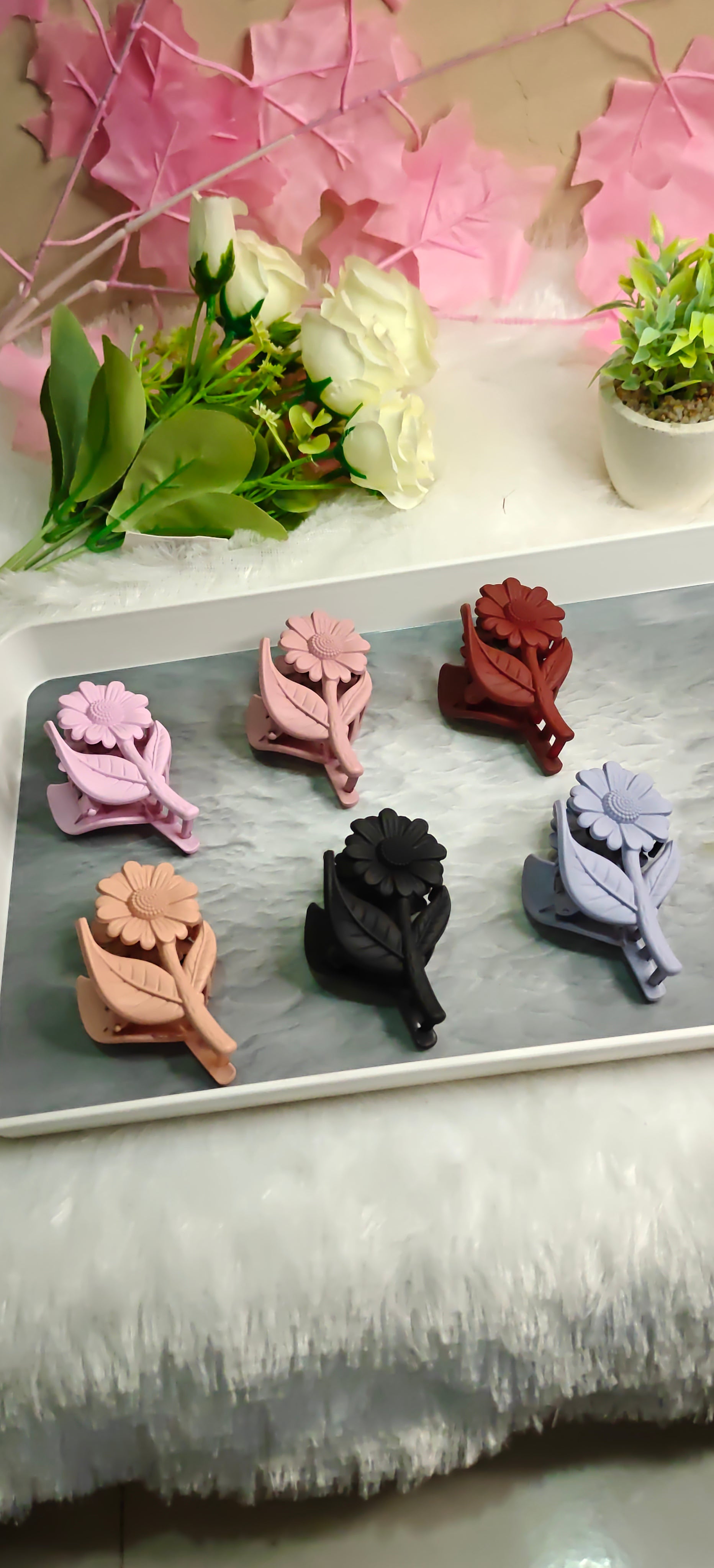 Floral Matte Hair Claw Clips – Set of 6 Cute Flower Design Hair Accessories