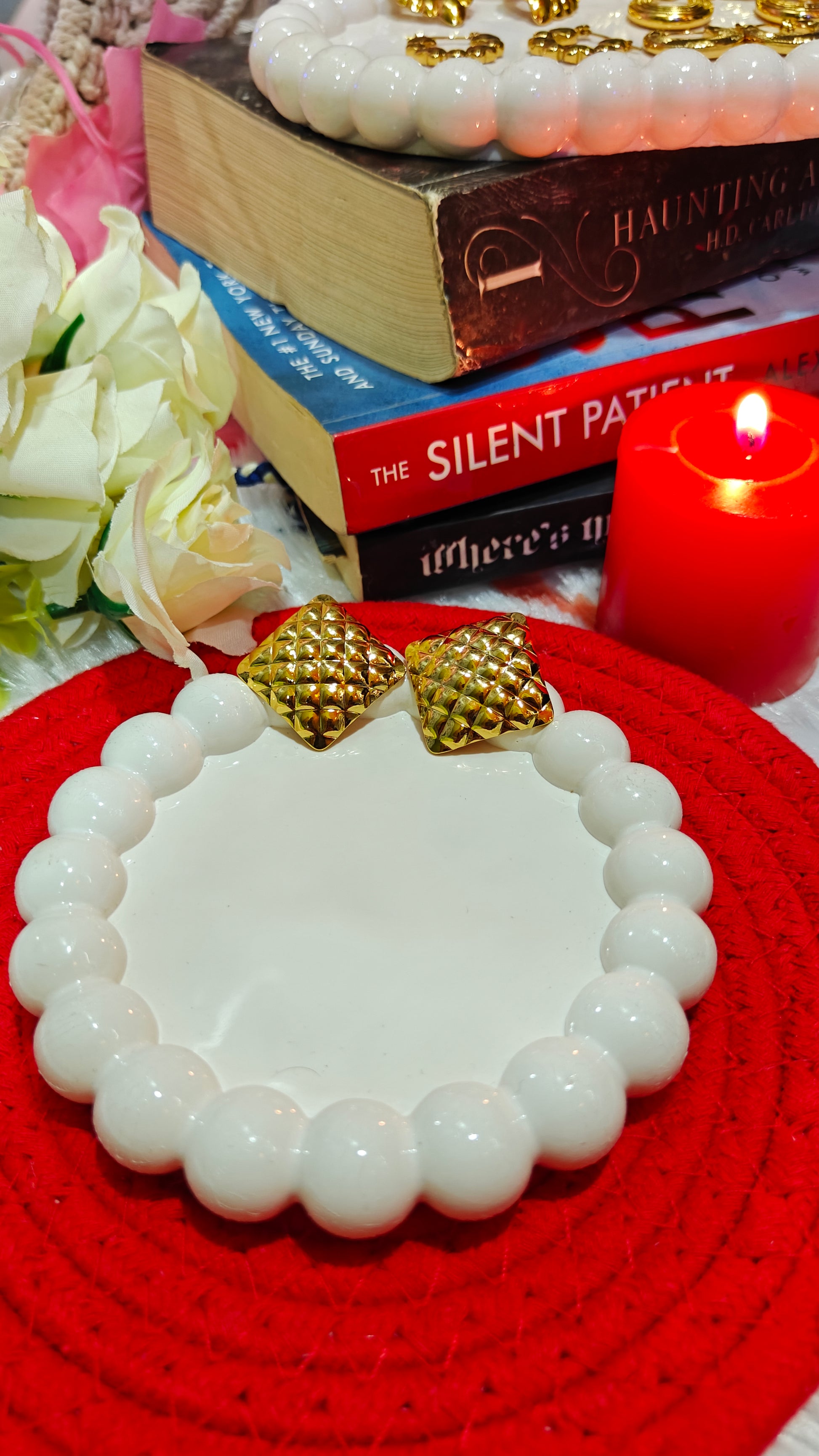 Golden Quilted Square Stud Earrings – Classic Statement Piece at Dilverse 💫