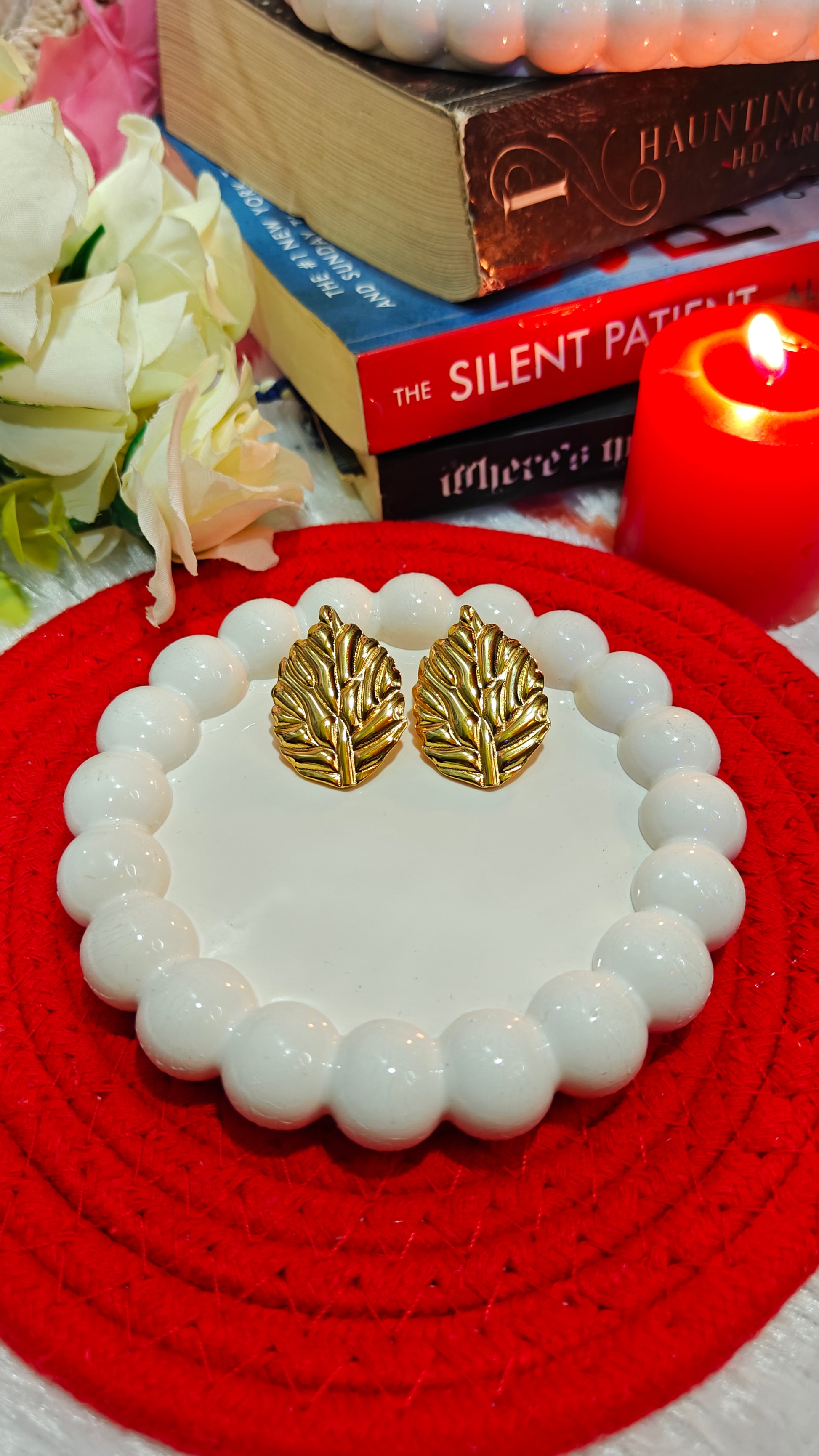 Golden Whisper: Enchanted Leaf Studs for the Bold Beautiful