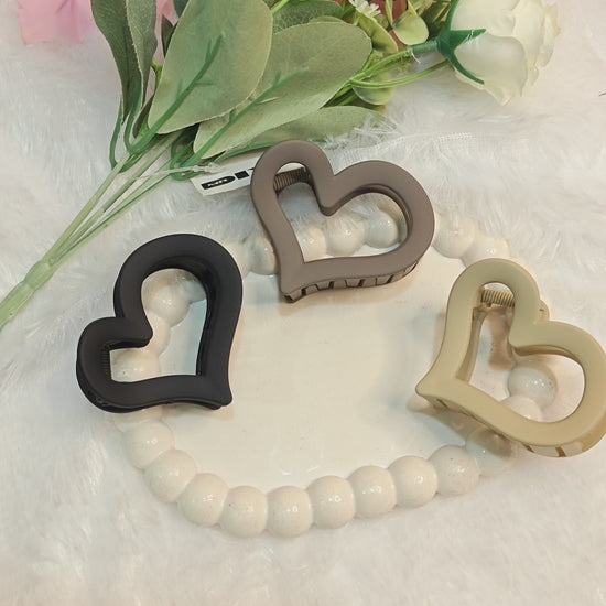 Heart-Shaped Hair Claw Clips – Set of 3 Trendy Matte Finish Hair Accessories