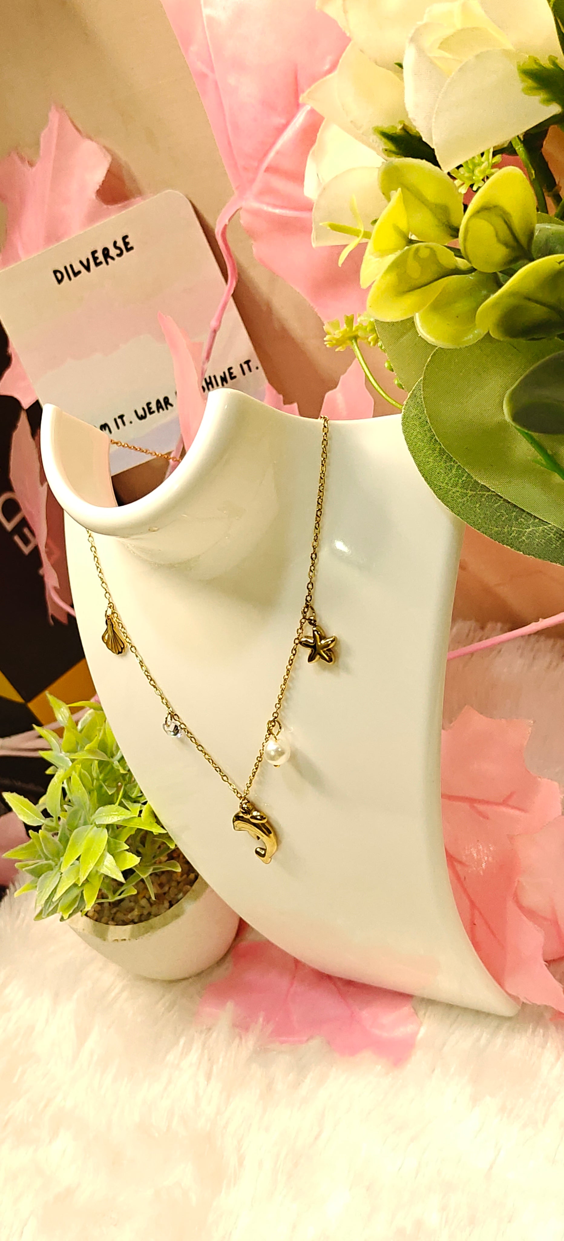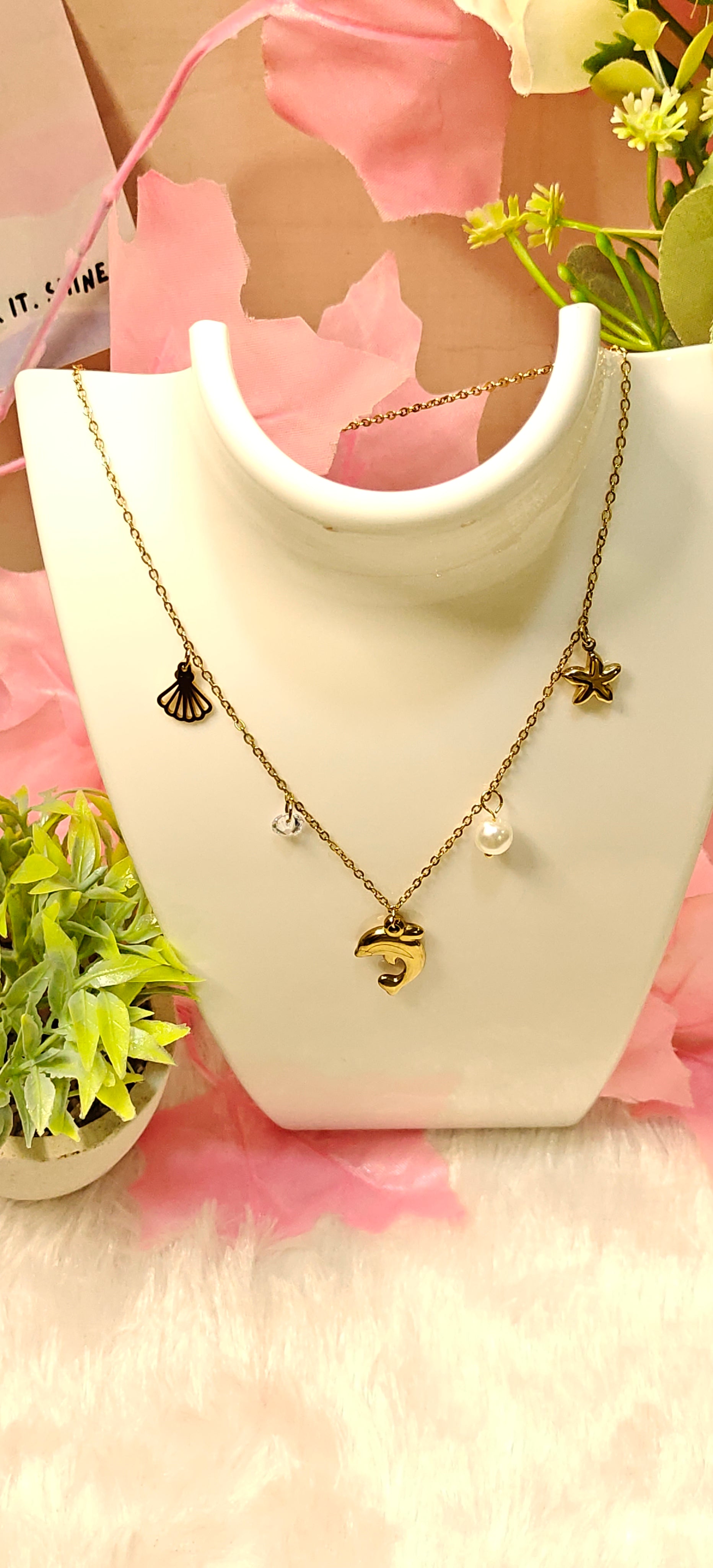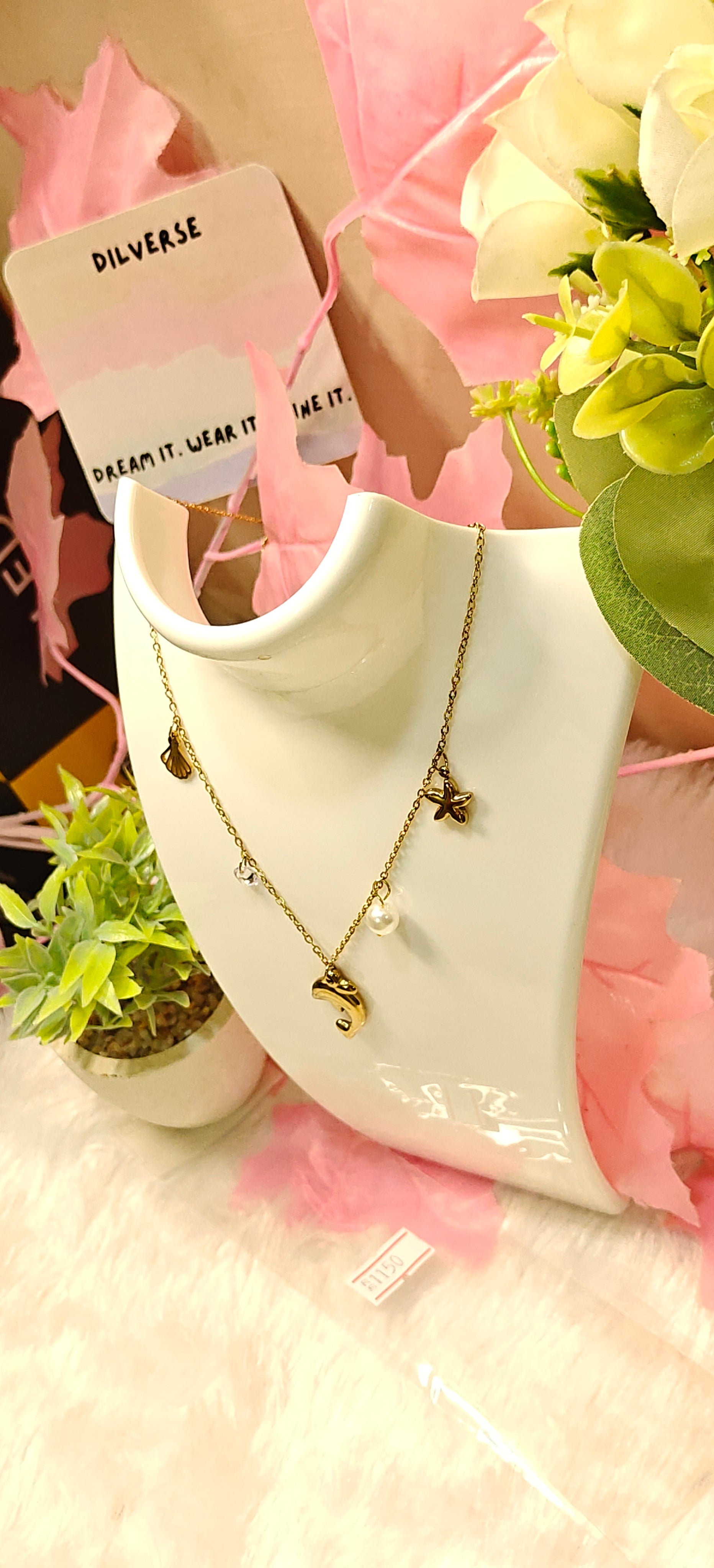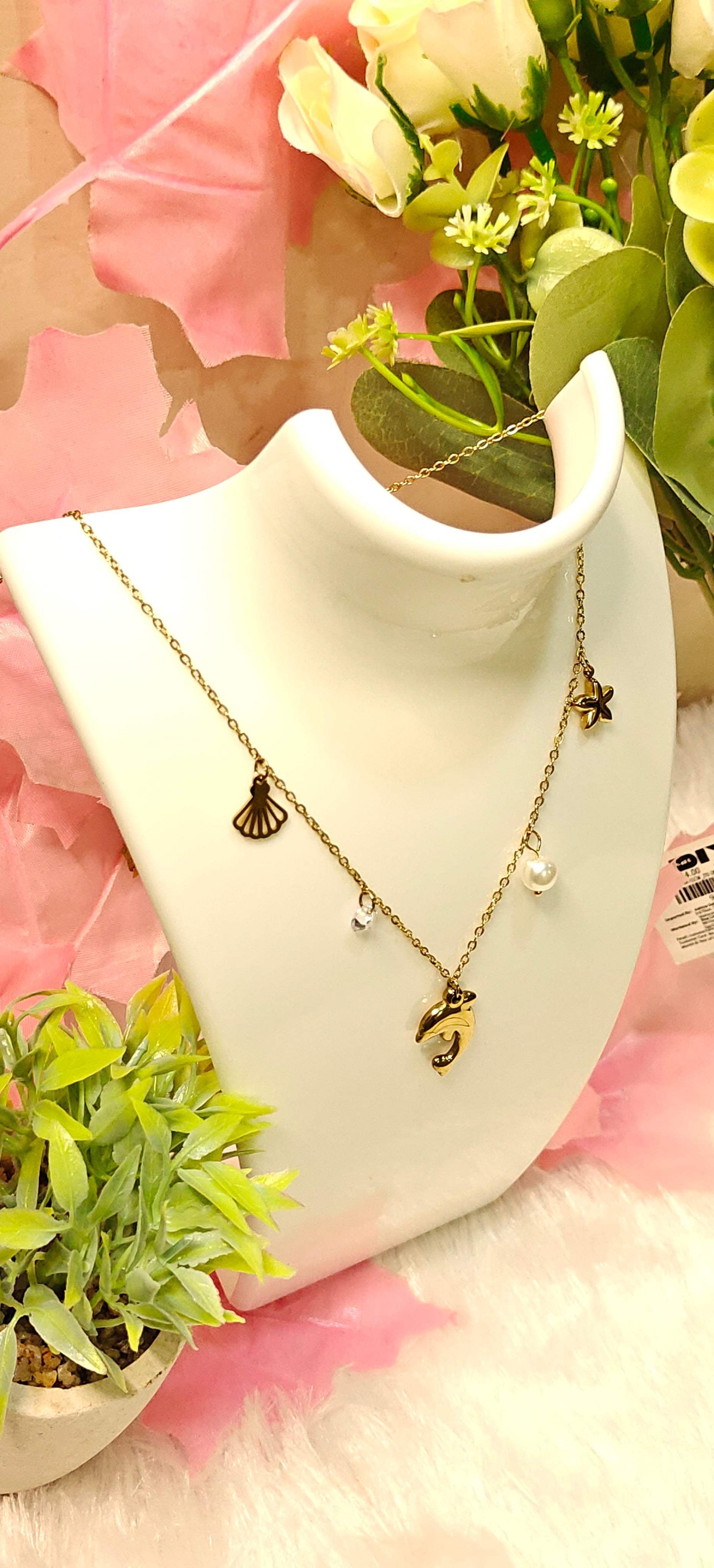 Dive into elegance with this stunning layered gold necklace set inspired by the sea’s magic.