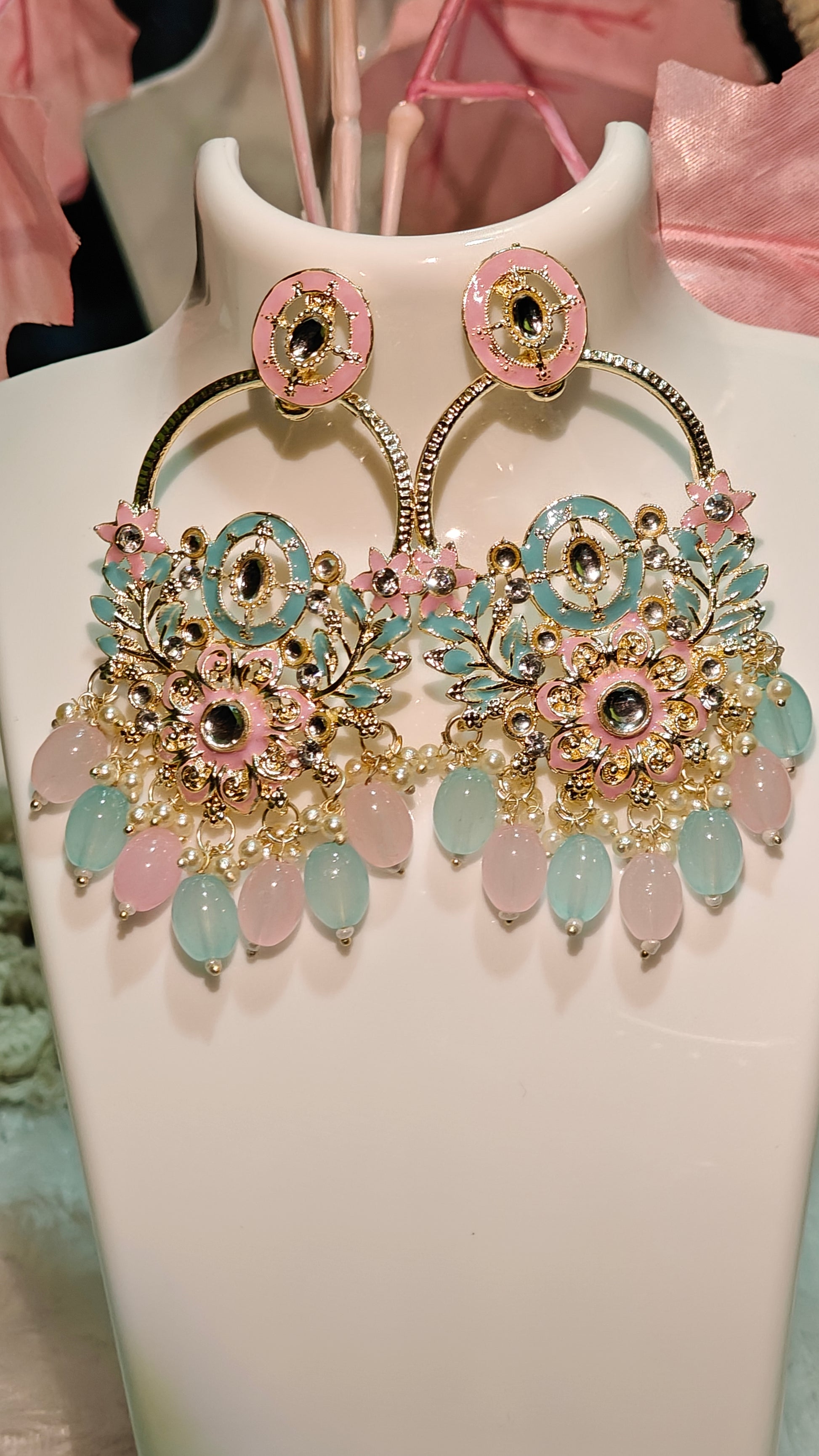 These Pastel Blossom Statement Chandbali jumkas feature elegant and intricate designs that will add a touch of sophistication to any outfit. With delicate pastel hues and a statement Chandbali shape, these jumkas are the perfect accessory for any occasion. Elevate your style and make a statement with these stunning jumkas.